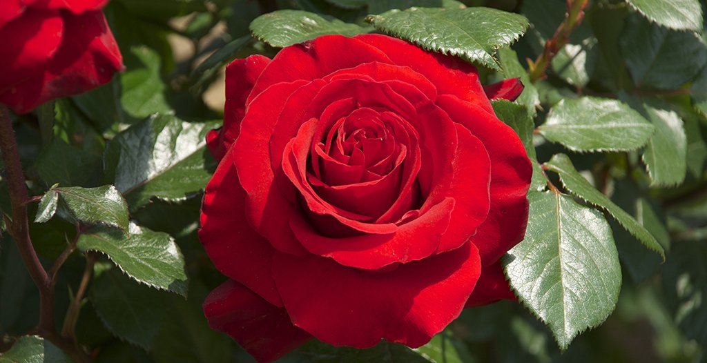 バラは、常陸国風土記に出てくる「イバラ」という言葉が「いばらき」の由来とされており、茨城県の県花にもなっています。一輪咲き(スタンダードタイプ)と房咲き(スプレータイプ)があり、花色や花形など多様な品種が栽培されています。赤バラでは「サムライ08」という品種が人気です。