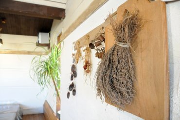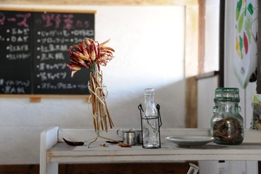 店内の雰囲気は「大草原の小さな家」のような、とてもカワイイ農家風カフェ。装飾品ひとつひとつにも温かみがあります。 店に入ると入口のすぐ横に、ファーマーズキッチン自社農場で収穫した季節野菜や野菜を練り込んだケーク・サレ、オーナーの友人達の作った革製品や陶芸品なども販売されています。