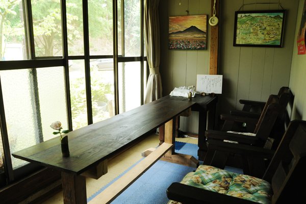 店舗は、明治初期に建設された一軒家を店主がリフォームしたものです。店内に入るとまっ先に囲炉裏が目に飛び込んできて、まるで祖父の家に遊びにきたような感覚になります。また、店内の一部のテーブルには、店主と友人達が手作りしたものを使用しているなどのこだわりもあります。