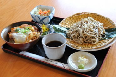 レストランでは、地元産そば粉を使用し、毎朝店内で手打ちされるそばや、結城地域の郷土料理であるすだれ麩(※)、かんぴょう料理がご宴会でいただけるほか、茨城産ローズポークで作るかつ丼などがズラリ。なかでも一番人気なのが、手打ちそばとお好みのミニ丼が付いた「つむぎ定食」です。 ※すだれ麩…小麦粉から取り出したグルテンを主原料に、竹で出来たすだれにのばして塩で煮固め、天日で乾燥させて作ったもの。ごま酢あえなどが代表的な調理方法です。