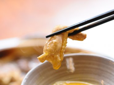 奥久慈しゃものもも肉、むね肉、レバーを贅沢に使ったしゃもすきは、奥久慈しゃもの卵につけていただきます。 甘辛の割り下と濃厚な奥久慈しゃもの卵の組み合わせは最高の贅沢。大子町名産のこんにゃくと、しゃもの出汁でコクがでた割り下の相性も抜群です。