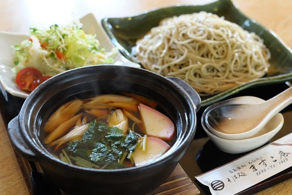 ますこ庵の人気メニューは、奥久慈しゃものだしが効いている「奥久慈しゃもそば」。名古屋コーチン、 比内地鶏と並ぶ 日本三大美味鶏の奥久慈しゃもの肉は、歯ごたえがあり、コクのある旨みがたっぷり詰まっています。しゃも入りのつけ汁が土鍋に入っているので、温かさが保てるのもうれしい心遣い。また、夏季(6月~9月)限定の大根そばも、さっぱりとしていて人気があります。