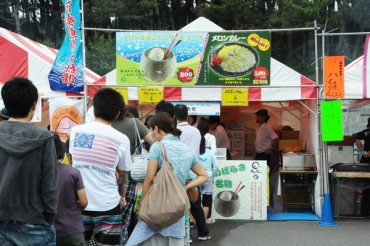 グルメイベントにも勢力的に出店している「酒趣」は、ひたちなか市で毎年夏に行われる、ロックイベント「ROCK IN JAPAN FESTIVAL」に、凍らせた丸ごとメロンに、ソーダを入れてバニラアイスを添えた「メロンまるごとクリームソーダ」と、メロンを使ったスパイシーな「メロンカレー」を出展したところ、これが話題になり、行列ができる大ヒット商品となりました。 「ROCK IN JAPAN FESTIVAL」といったら「メロンまるごとクリームソーダ」と言われるほど、ROCK IN JAPANの名物になっていましたが、噂が噂を呼び、今では日本全国から出展依頼が来るほどの、夏の茨城名物となっています。 生産量日本一の茨城産メロンを使用し、名前も食欲をそそられる「メロンカレー」と、凍らせたメロンが夏の外気でほどよく溶け出し、ソーダとアイスと混ぜてひんやりジューシなメロンの果肉をほうばれば、んもぉ~たまらない「メロンまるごとクリームソーダ」を、もしどこかのグルメイベントで見つけた際には、ぜひ食べてみて下さい。 メロンカレーは「酒趣」店舗でも食べられますので、ぜひ一度お試しあれ!