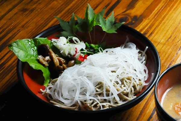 昔屋で働いているみなさんは、笑顔がキラキラしています。若旦那の小林さんは、オーストラリアへの1年間のワーキングホリデーだけでなく、BMW社の【M3】を愛するがあまり、ドイツに放浪の旅に出たこともあるアクティブな方で、今ではロードバイクでサイクリングが趣味だそうです。そんな小林さんの打つおそばは、愛情と元気がつまっていて、けんちんと一緒にいただくと心身共に癒され、パワー充電ができちゃいます。 最後に、店先のせいろでふかしている薄皮の「昔まんじゅう」を食べれば充電は120%!