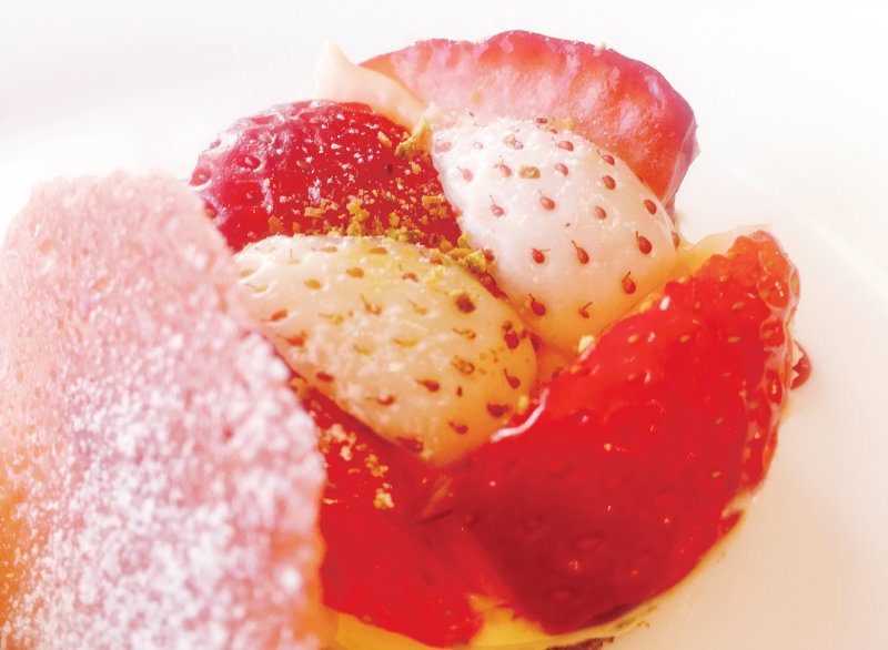 前菜、スープ、メインのお料理からデザートまで、どれも“旬”を感じられるオー・ボン・ヴィヴェールのメニュー。1月~3月のデザートは、旬真っ盛りのいちごを使ったメニューが提供されます。 鉾田市の村田農園や夢ファーム、常陸太田市の桧山さんの「とちおとめ」や、幻のいちごと言われる「バインベリー」、「白いちご(あわゆき)」など、選りすぐりのいちごを使用した「オーボンヴィヴェールのデザート」を日替わりで楽しむことができます。 いちごのムース、ソルベ以外のいちごのデザートは、その日仕入れたいちごに合わせてメニューを考える為、同じデザートは二度と味わえないことも魅力です。 ※デザートはコース料理に入っています。いちごを使ったデザートの提供は2018年3月4日まで。