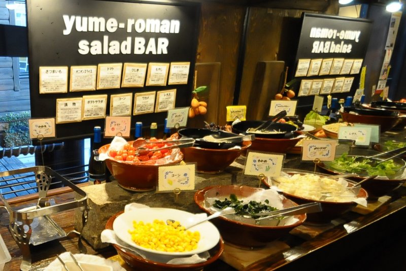 水戸市「赤塚駅」のほど近くにある、「お肉のおいしいレストラン 夢浪漫」は、「肉」にこだわった数々の料理が自慢のレストランです。 ログハウス調の外観で、正面には大きなシェフの看板が、どどんと付いています。 店内は、レトロな雑貨が散りばめられた、アンティーク調の落ち着いた空間で、古いミシンを使って作られたテーブルなどもあります。 スタッフのアイディアではじまったという新鮮野菜の「サラダバー」も人気です。