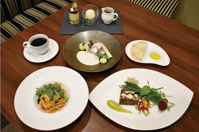 リチェッタの一番人気は、「ブッフェ付きランチ」。約15種類の中から「メイン」をチョイスすると、サイドメニュー、デザート、ドリンクが食べ放題、飲み放題で付いてきます。デザートも豊富で、女子会やママ会にとても人気。リピーターが続出しています。 夜のディナータイムは雰囲気が変わり、落ち着いた大人の雰囲気になります。 ディナーコースは 3,800円、5,000円、7,500円(税金・サービス料込)と用意されています。地元茨城の旬の食材を中心に構成されたメニューで、月替わりで内容が変わります。