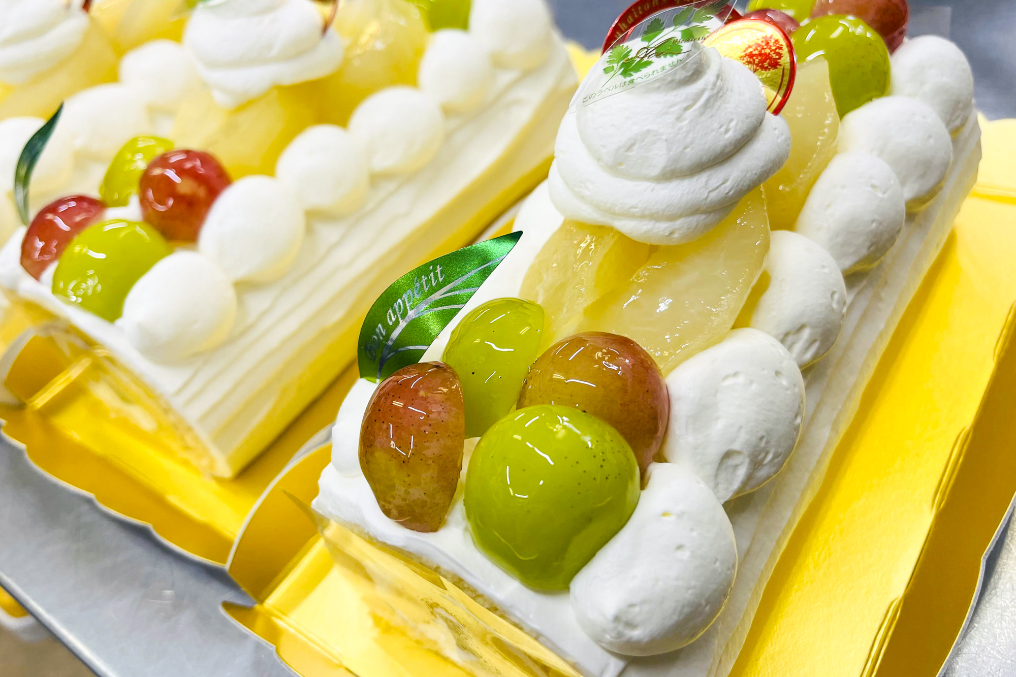 その他、シャインマスカットのデコレーションケーキや和梨のデコレーションケーキなども注文可能。お祝い事のケーキにもぴったりのスイーツです。