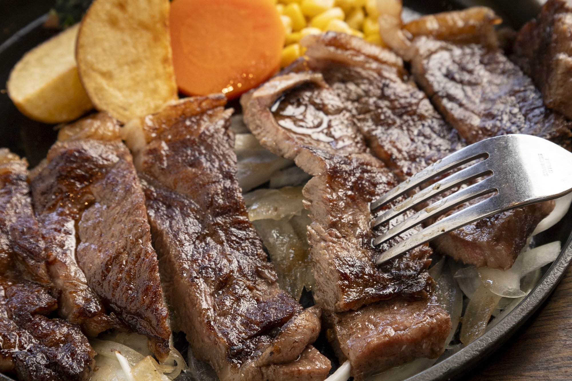 ステーキはサーロインとテンダーロイン(ヒレ)の2種類のみで、肉は常陸牛・国産黒毛和牛・国産牛の3種類から選べます。