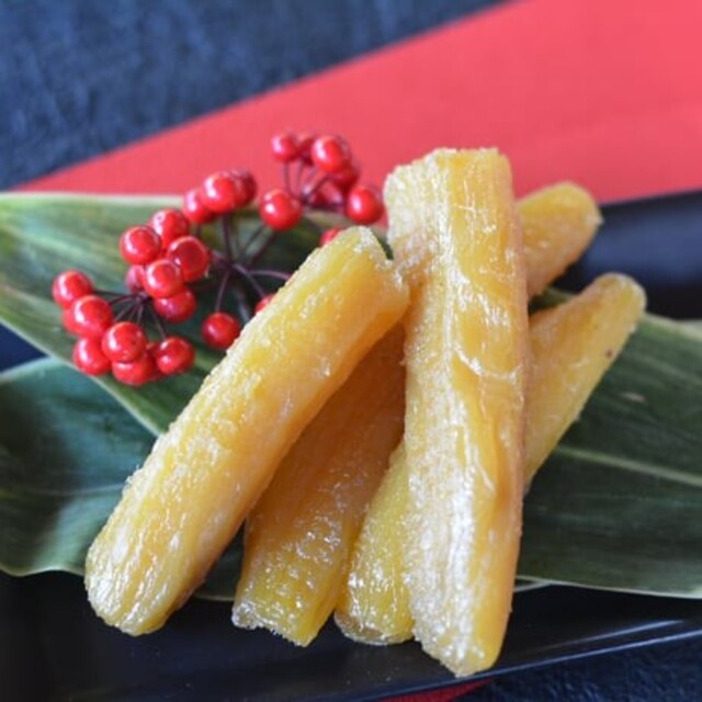 日本有数のサツマイモの産地である茨城県行方市。紅はるかを贅沢に「干しいも」にしました。 独自の乾燥技術を使用することにより、さつまいも本来の甘みを最大限に引き出し、甘く濃厚な味わいが特徴の干しいもです。 高糖度で肉質がしっとりとした干しいもは、黄金色が目に鮮やかで柔らかくしっとりしています。 一つ一つ丁寧に仕上げられた甘く濃厚でスイーツのような干しいもです。 生芋の蒸し工程から、製品包装工程まで衛生環境の整った工場で製造しております。