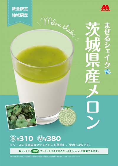 EVENT / 旬のうまいもの特集 新着・イベント情報 【7/28発売】モスバーガー「まぜるシェイク 茨城県産メロン」(2021/07/28) モスバーガーは、茨城県鉾田市にある長洲農園のオトメメロンを使用した「まぜるシェイク 茨城県産メロン」を、茨城県と千葉県の全店(一部店舗除く)にて数量限定で販売します。モスシェイクバニラに、茨城県産メロンを使用したメロンソースを合わせることで、香り高くフルーティな味わいになっています。数量限定ですので、お早めにお買い求めください。○商品名 「まぜるシェイク 茨城県産メロン」○発売日 2021年7月28日(水) ※なくなり次第終了○販売店舗 茨城県と千葉県のモスバーガー全店 (トナリエキュートつくば店、アリオ蘇我店を除く) 今、おすすめの記事 {{row.type_jp}} {{row.title}}