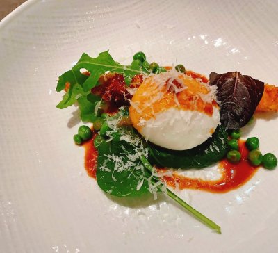 茨城ブランドの「奥久慈卵」とホワイトアスパラを使ったお料理は、ホワイトアスパラの甘味を最大限に引き出す為に油で素早く揚げ、旨味をギュッと封じ込めています。卵とホワイトアスパラの組み合わせはイタリアではおなじみのお料理でありながら、素材の鮮度により美味しさが左右されてしまう一品です。リッチなリコッタチーズを包んだレタスと一緒にいただく事で、絶妙な味わいと触感のハーモニーをお楽しみいただけます。