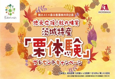 カスミ店舗で森永製菓対象商品をお買い上げのお客様に抽選で「焼き栗体験」または「栗農家こだわりの栗商品」のプレゼントキャンペーンが実施されます。