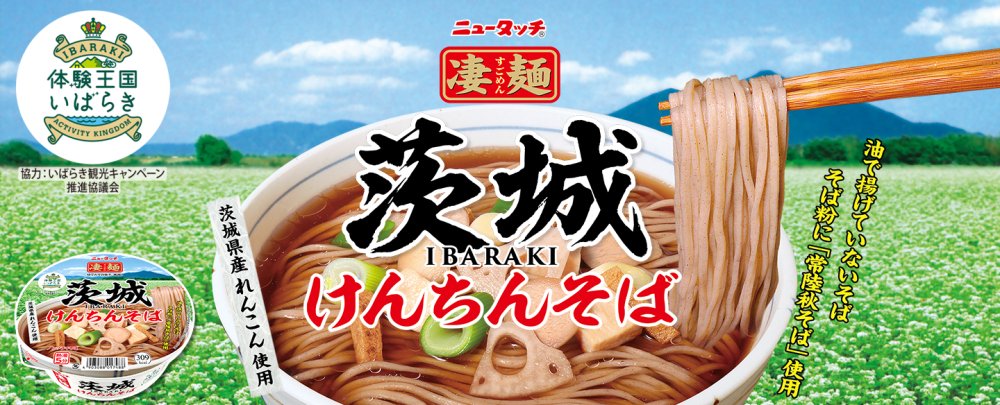 自宅にいながら手軽に本格的なご当地ラーメンが楽しめる「凄麺ご当地シリーズ」に、満を持して企業地元の茨城郷土料理として「茨城けんちんそば」が仲間入り。茨城アフターDC特別企画として、茨城県も開発に協力しているほか、関連イベントも開催予定です。