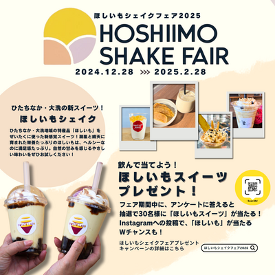 ひたちなか大洗地域の新ご当地スイーツ「ほしいもシェイク」の取扱店舗を、期間限定で拡大する『ほしいもシェイクフェア2025』を開催します。