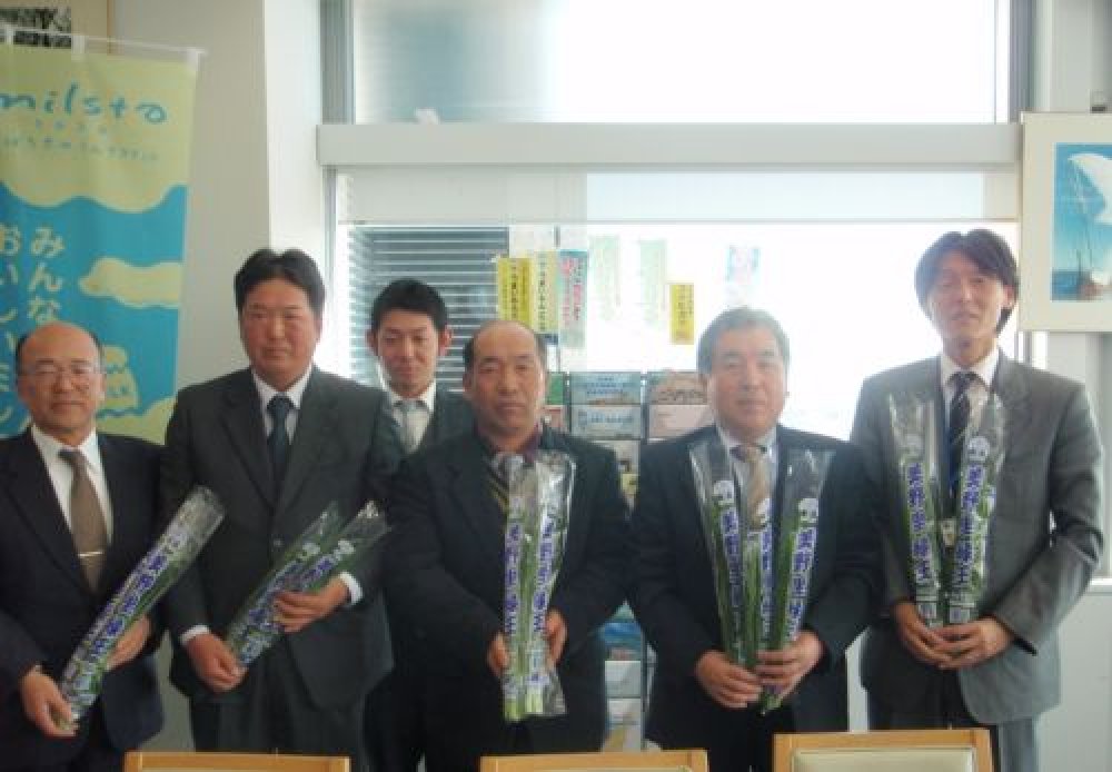 1月26日(水曜日)、JA美野里町にら生産部会の小田部部会長ほか関係者のみなさんが県庁を訪れ、