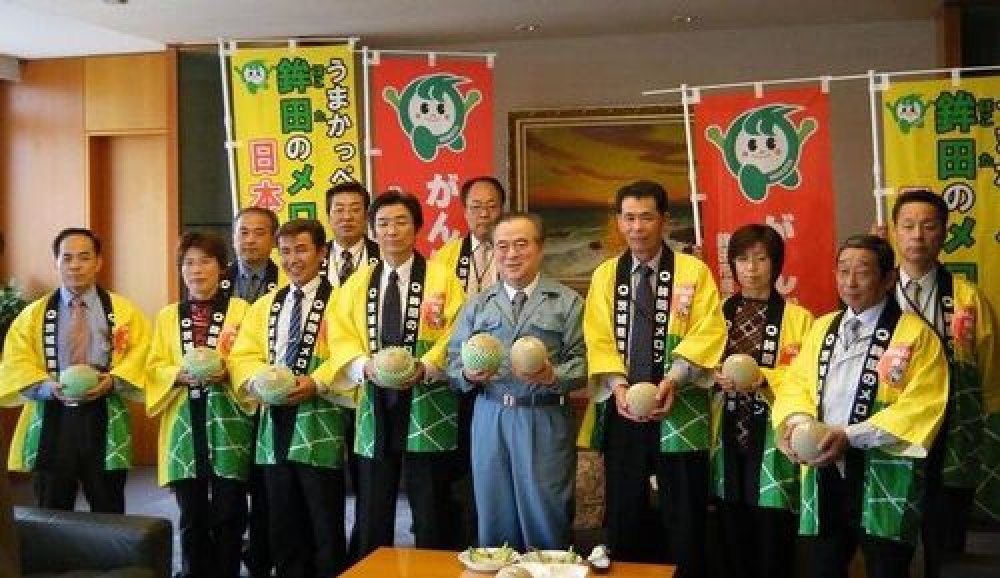 4月27日(水曜日),鉾田市の鬼沢市長ほか,生産者代表,JA関係者計18名が県庁を訪れ,橋本昌知事にこれから旬を迎えるメロンをPRしました。