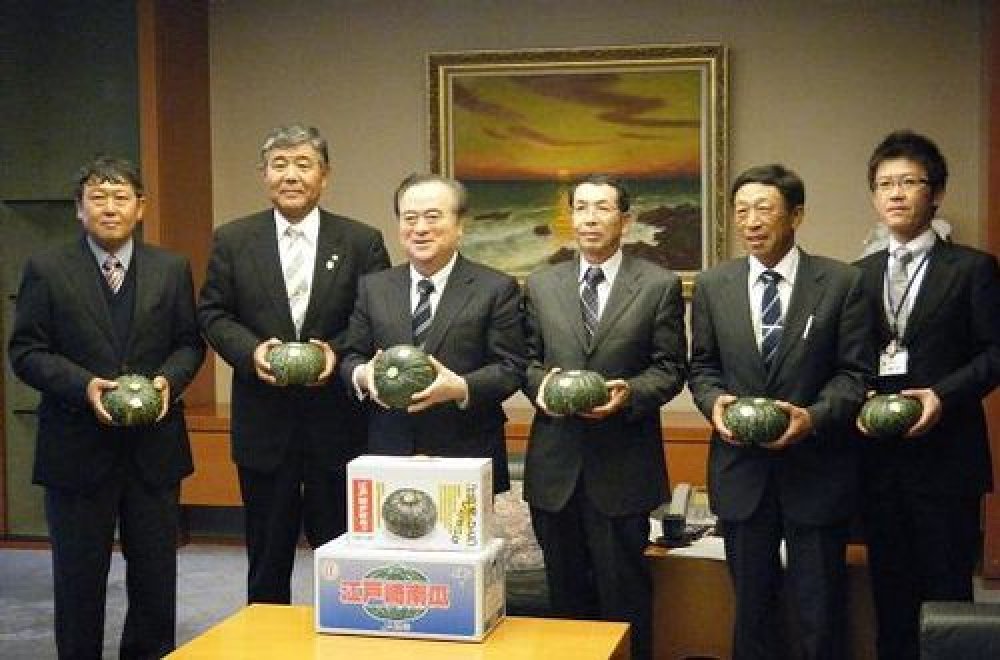 JA稲敷江戸崎南瓜部会が県庁で「江戸崎かぼちゃ」をPR(2011/05/30)