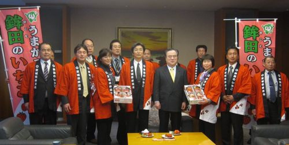 鉾田市・JA茨城旭村・JAかしまなだが「いちご」を県庁でPR(2012/02/10)