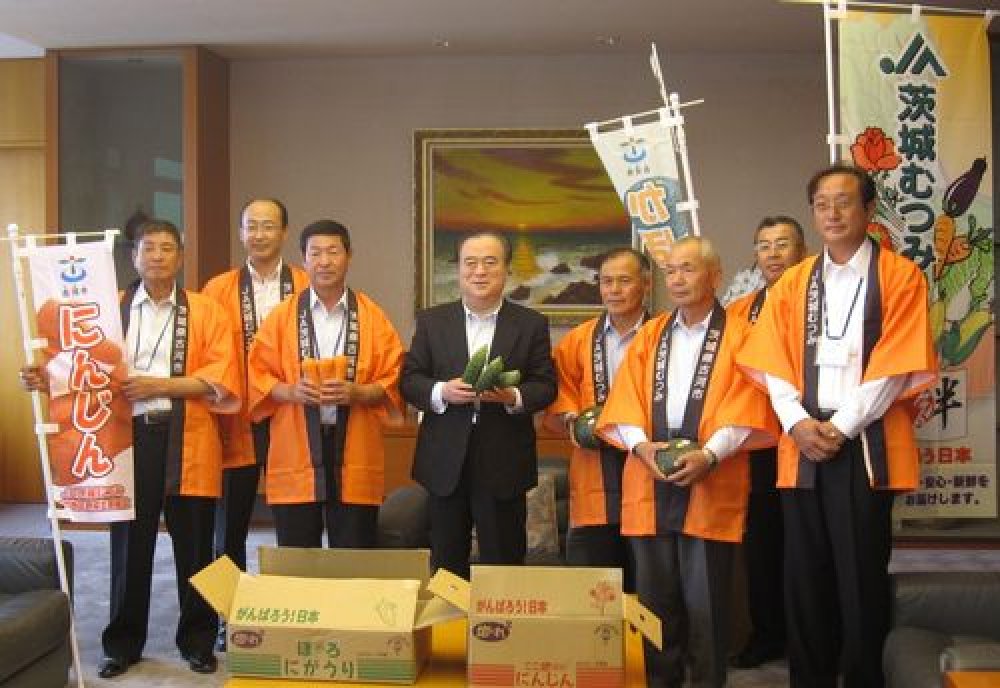 古河市・JA茨城むつみが県庁で「銘柄農産品(かぼちゃ・にんじん・にがうり)」をPR(2012/07/03)