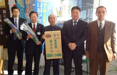 EVENT / 旬のうまいもの特集 新着・イベント情報 JA美野里町にら生産部会が「にら」を県庁でPR(2013/01/22) 1月17日(木)、JA美野里町にら生産部会の白井部会長、東ケ崎副部会長ほか関係者の皆さんが県庁を訪れ「にら」をPRしました。小美玉市美野里地区は「にら」の栽培が盛んな地域で、平成9年に青果物銘柄産地に指定されています。また葉の幅が広く肉厚なものだけを厳選した「にら」を、「美野里緑王」としてブランド化し販売しています。1月から2月にかけて収穫される「にら」は、とても柔らかく甘みがあるため、「おひたし」にして食べるのが特にお勧めです。丁寧に育てられた栄養が豊富な「にら」を是非ご賞味ください。 【JA美野里町の「にら」に関するお問い合わせ】JA美野里町農産センターTEL:0299-48-1691 今、おすすめの記事 {{row.type_jp}} {{row.title}}