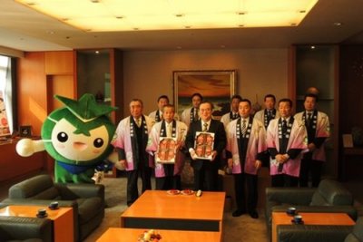 茨城町いちご生産部会の江橋部会長ほか14名のみなさんが県庁を訪れ,