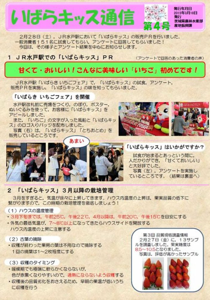 茨城県オリジナルいちご「いばらキッス通信(第4号)」を発行(2015/03/19)