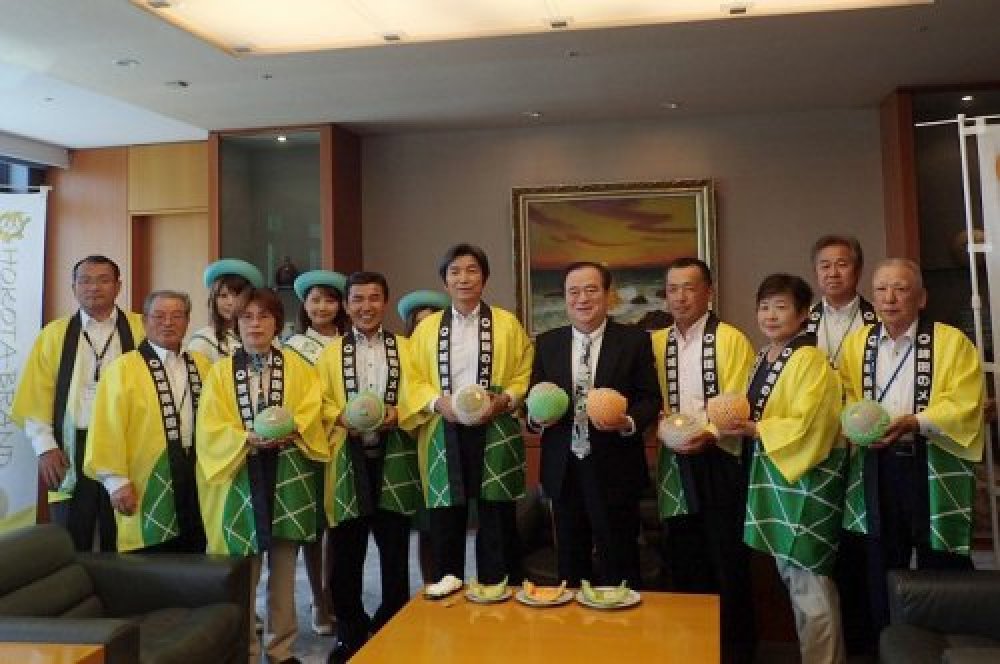 鉾田市・JAほこた・JA茨城旭村の皆さんが「メロン」を県庁でPR(2015/05/26)
