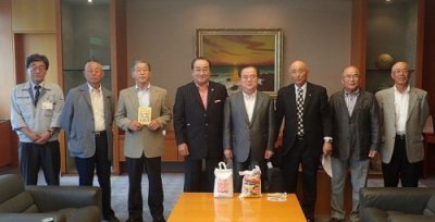 平成27年6月16日(火曜日),株式会社ふるさとかわちの代表取締役野髙貴雄氏と,河内町ブランド米推進部会の神谷修一氏をはじめとした計7名の皆さんが県庁を訪れ,「おかずのいらないかわちのお米」と「とねのめぐみ」のPRを行いました。