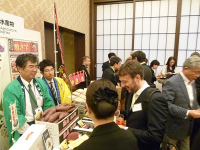また,JAなめがた職員による「熟成紅こがね」の焼いもの試食PRが行われ,試食した方から「wonderful!」との声が聞かれるなど大好評のうちに幕を閉じました。
