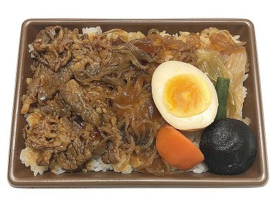 ・牛肉のほか、じっくり煮込んだ白滝やネギ、味付き玉子等を盛り付けた満足感を感じられる商品です。