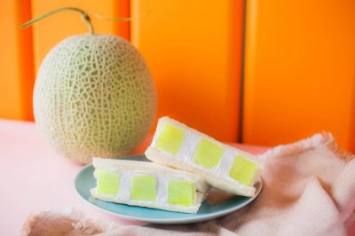 フルーツサンド専門店<フルーツボックス代官山>による、茨城県鉾田市産“プレミアムメロン”を使用した「メロンサンド」。