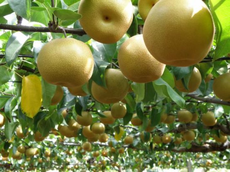 有機質肥料や自家製ぼかし肥料を使った土作りをしています。定番の品種からレアな品種まで10種類の梨を栽培しています。