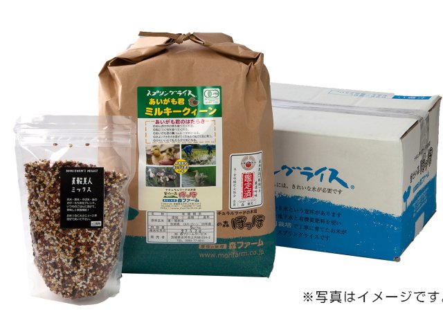 商品名:【あいがも君ミルキークイーン白米1kg&あいがも君こしひかり白1kg+雑穀米ミックス200g】