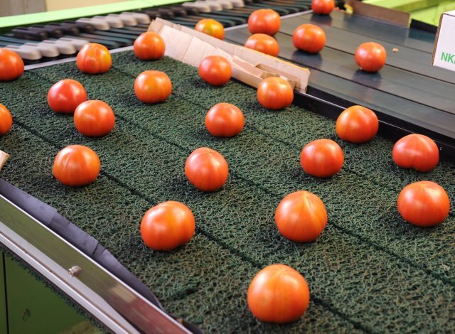 光センサー付選果機【イタマーズ】をKEKグループが独自開発し、トマトを転がすことなく選果しています。同時に光センサーですべてのトマトの形状、糖度を選別し、更にスタッフがひとつひとつ丁寧にチェックすることで、トマトの品質を維持しています。