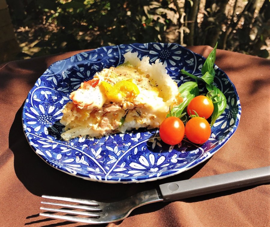 生地のチーズが溶けたカリッと感とご飯のもっちりとした食感が楽しいレシピです。
