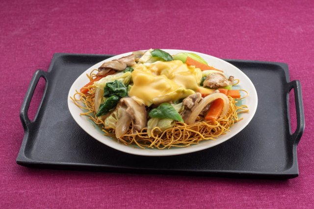野菜たっぷりあんかけに、とろ~りチーズをからめていただきます。