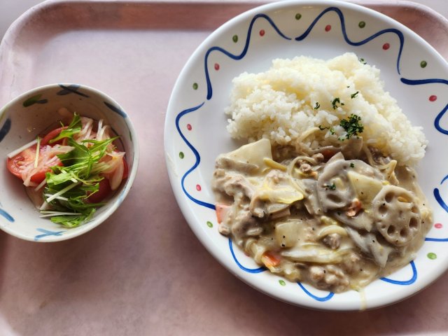 2月茨城県×雪印メグミルク 減塩レシピ【野菜たっぷり チーズ仕立ての白いビーフストロガノフ・トマトサラダ】