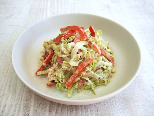 白菜のシャキシャキした食感がたのしめるバジル風味のコールスロー風サラダです。