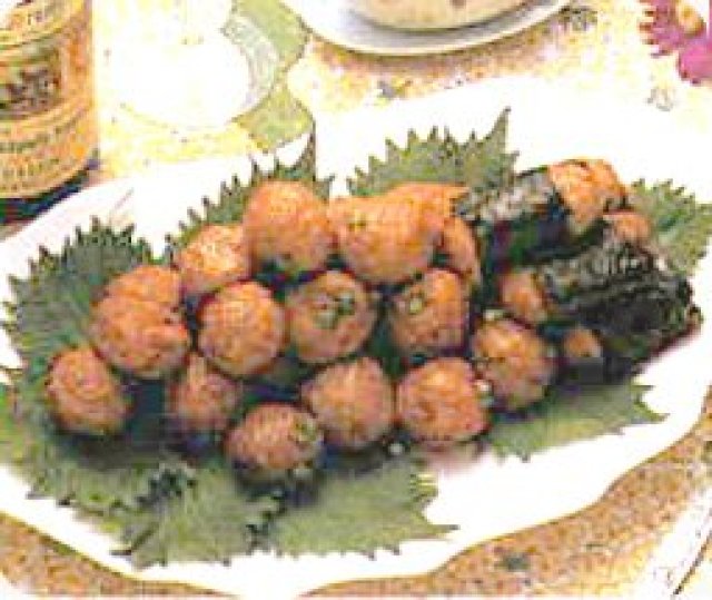 1を軽くしぼって(しぼり汁はくずよせに使う)器に入れ、ひき肉と2を混ぜ、塩・洋こしょう・片栗粉・たまごを加えて30個くらいに等分して油できつね色になるように揚げる。
