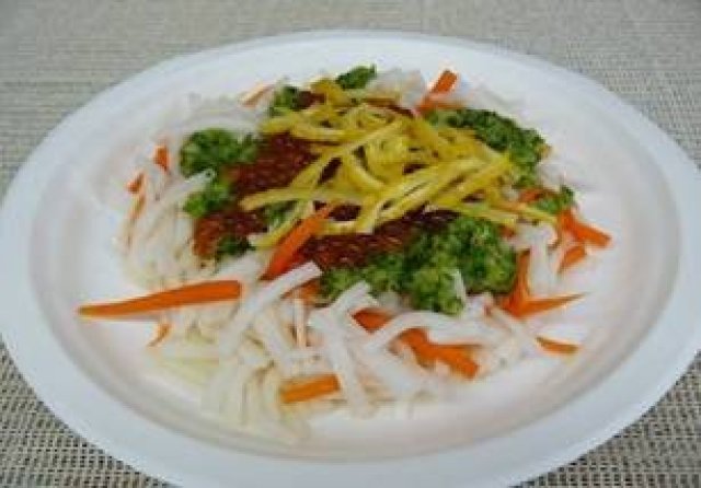 大根と人参はせん切りにして、塩少々をふりしんなりさせる。