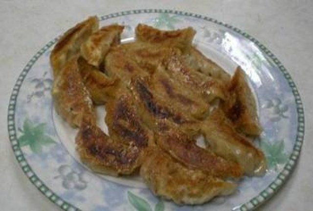 フライパンに胡麻油を熱し、ぎょうざを並べ強火で焼き色をつけ、湯を餃子の高さの半分ぐらい入れ、蓋をして弱火で3~5分焼き、パリッとさせる。