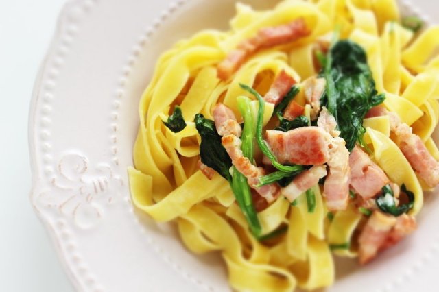ほうれん草とベーコンのパスタ