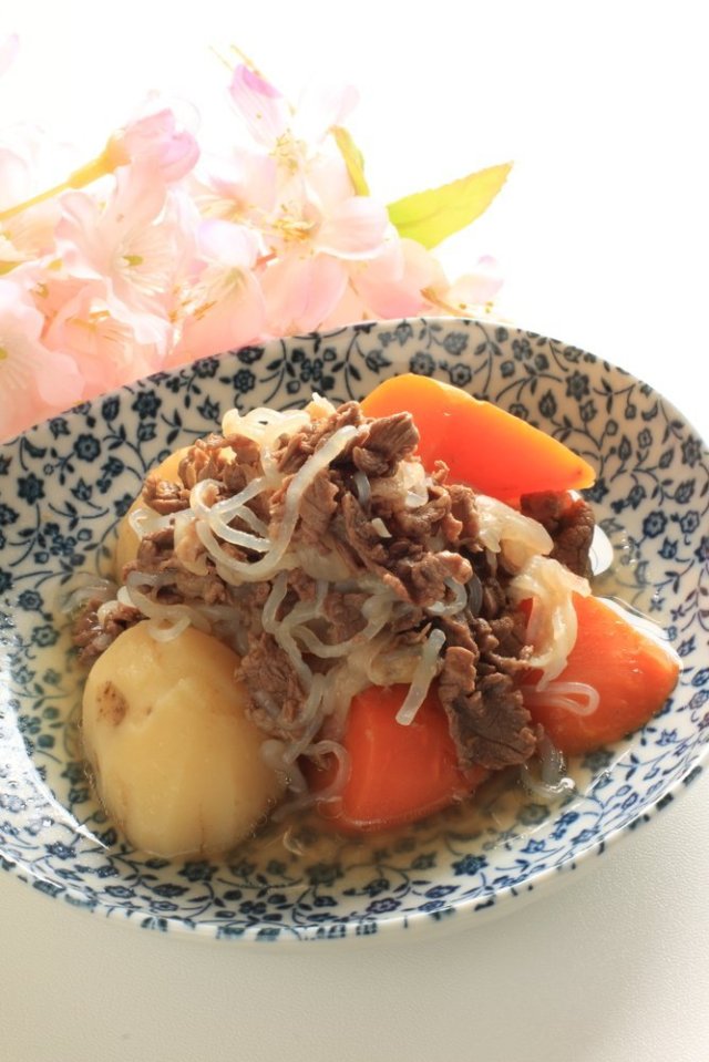 煮汁がなくなってきたら砂糖としょうゆで味をととのえて、煮汁がなくなったら器に盛る。