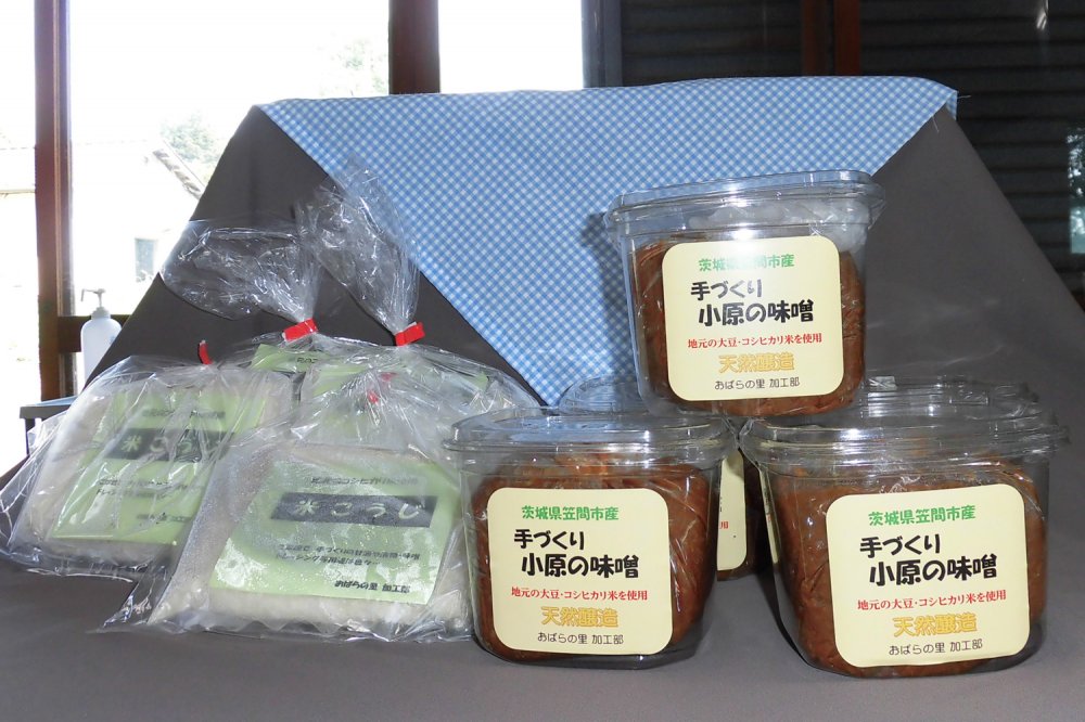 笠間市産の米と大豆を使用し、添加物を加えず、安心・安全に配慮した昔ながらの製法の手づくり味噌です。