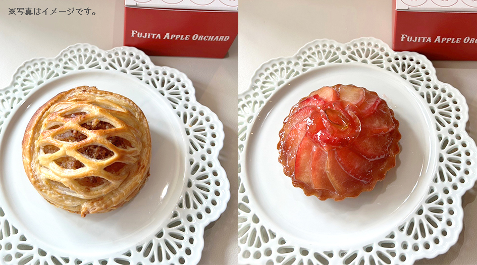 タルトは、ピンク色のつぼみから白い花びらが開き、りんご畑一面がお花のほのかな香りに包まれる様子をイメージした商品です。 スライスりんごとコンポートでりんごの美味しさをダブルで味わえます。