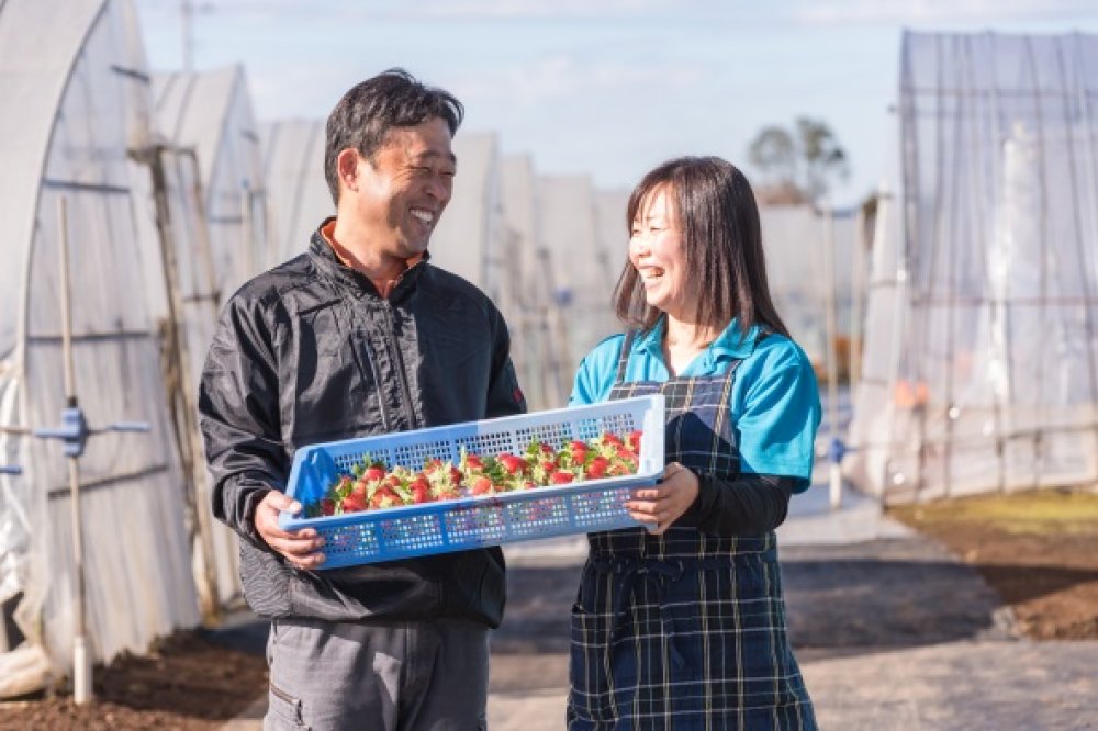 大切に育てたイチゴを一粒一粒、必ず両手でやさしく摘み取ったものを使っています。