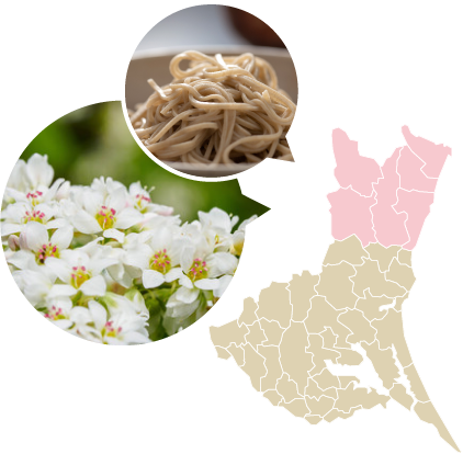 県北地域は、昼夜の気温差が大きいことや水はけのよい傾斜地など、そばの栽培に適した条件が揃っており、江戸時代から「そばどころ」として知られた名産地です。