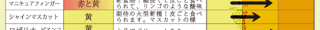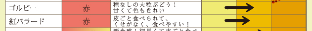 品種:ロザリオ(ビアンコ、ロッソ) 色:ビアンコ、黄。ロッソ、赤 特徴:上品でボリュームあり。ビアンコは皮ごと食べれます。 時期:9月中旬から10月まで