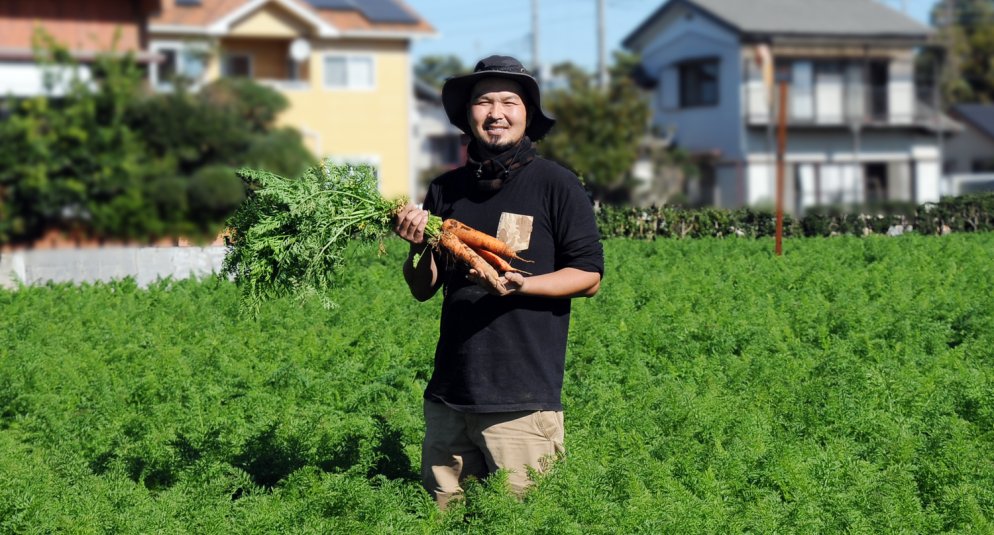 東郷さんに今後の展望をお伺いすると「日本一の作り手になりたいです」と即答。 「父から経営を引き継いだ7年前に『日本一になる』と決めました。周囲にも明確に“日本一”と認めてもらうには賞を取るしかないと思うので、正確には目指せ『天皇杯』です。つくばみらい市の農業をもっと盛り上げたい。私が突き抜けて日本一になれば、つくばみらい市の農業も全国的に注目されると思うんです。そのために、メディアのお誘いがあれば断わりませんし、客寄せパンダでもどんどん前に出ていきます。大きな事言ってと思われるかもしれませんが、じわりじわりと計画性を持って本気で取り組んでいます。どんな環境でも一級品を作れるのがプロだと思ので、しっかり儲けながら常にA品率100%を狙い、大きな賞レースに参加できるようになりたいです」 掘り起こしたにんじんを見つめ、「良いにんじんだ!」と目を輝かせる東郷さん。 にんじんの選び方を聞くと「色が鮮やかなもの。おしりが丸くなっているものがおすすめです。うちのにんじんは1月頃に一番味がのるので、シリシリなどにして食べてみてください」 “熱い男”東郷さんの言葉の節々からは「本気で日本一になる」という熱量が伝わってきました。 挑戦を続ける東郷さんに今後も目が離せません。 天皇杯…農林水産祭(※)参加表彰行事において農林水産大臣賞を受賞した中から決定された「天皇杯」、「内閣総理大臣賞」及び「日本農林漁業振興会会長賞」のうち最高位にあたるもの。各賞は、農産・蚕糸部門、園芸部門、畜産部門、林産部門、水産部門、多角化経営部門、むらづくり部門の7部門に授与される。また、女性の活躍が著しい2点に対して、内閣総理大臣賞と日本農林漁業振興会会長賞が授与される。 (※)農林水産祭:国民の農林水産業と食に対する認識を深めるとともに、農林水産業者の技術改善及び経営発展の意欲を高めるため、農林水産省と公益財団法人日本農林漁業振興会の共催により昭和37年から実施されている。